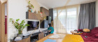 Der helle Wohn-/Essbereich mit angrenzender Küche bietet ausreichend Platz zum Wohnen und Essen. Die moderne Küche ist vollausgestattet und bereits im Mietpreis inkludiert. Vom Wohnraum aus gelangen Sie direkt auf die gemütliche, westseitig ausgerichtete Terrasse und den sonnigen Eigengarten.