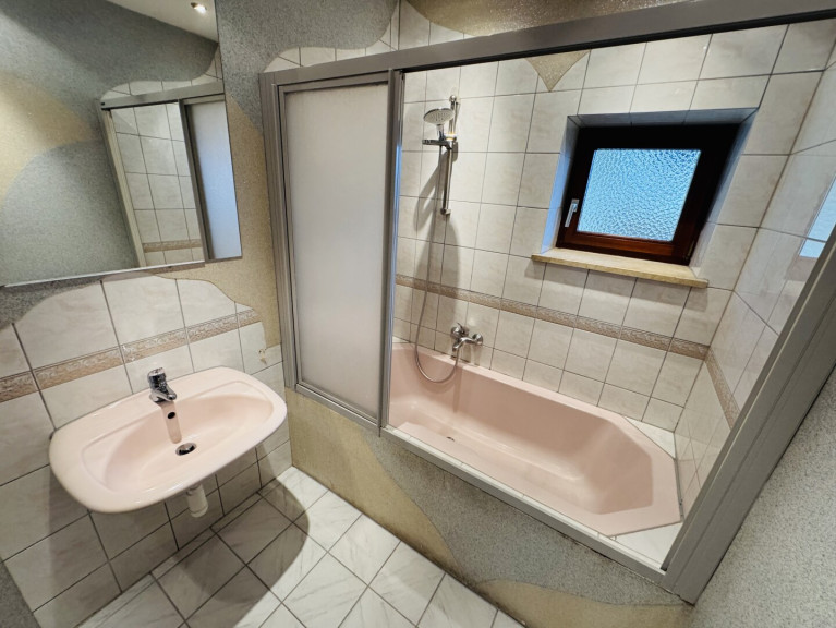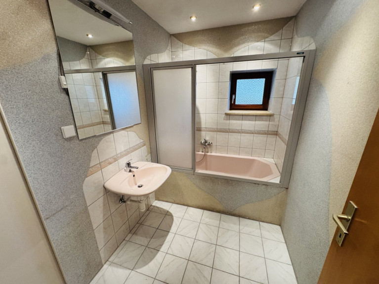 Zentralheizung, Bad mit Fenster, Badewanne, Dusche, Garage