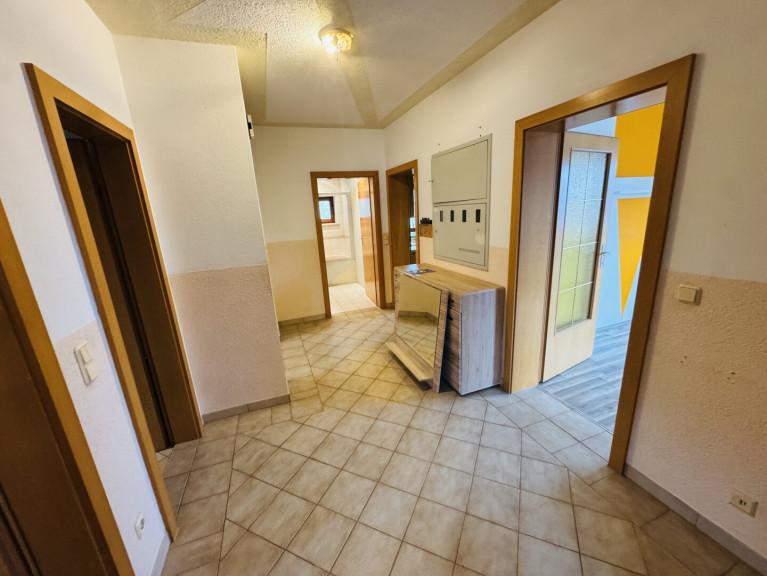 Neben der Wohnfläche von rund 108 m² bietet die Liegenschaft einen voll unterkellerten Bereich mit Außenzugang, großzügige Außenflächen sowie eine Garage.