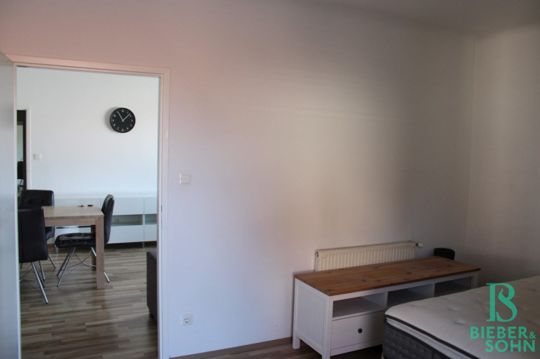 Vom geräumigen Vorraum aus ist ein WC, das Bad mit Wanne, ein Abstellraum mit Waschmaschine und das großzügige Wohnzimmer zu erreichen. Das ca. 20 m² große Wohnzimmer bietet optimalen Platz für einen separaten Essbereich an aber auch in der großen, modernen und hochwertigen Küche ist ein separater Essplatz vorhanden. Die Küche und das ca. 16 m² große Schlafzimmer mit Ausgang auf die ca. 6 m² große Loggia, mit Blick auf das alte Rathaus, sind vom Wohnzimmer aus zu begehen.