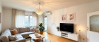 das große, helle und klimatisierte Wohnzimmer mit direktem Zugang zur Loggia (Parkett)