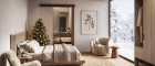 Minimalistisches Wohn-Schlaf-Zimmer mit bodentiefen Fenstern