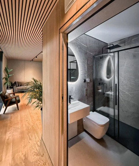 Hochwertige Ausstattung mit Echtholz-Parkett, Premium-Oberflächen und moderner Sanitärarchitektur