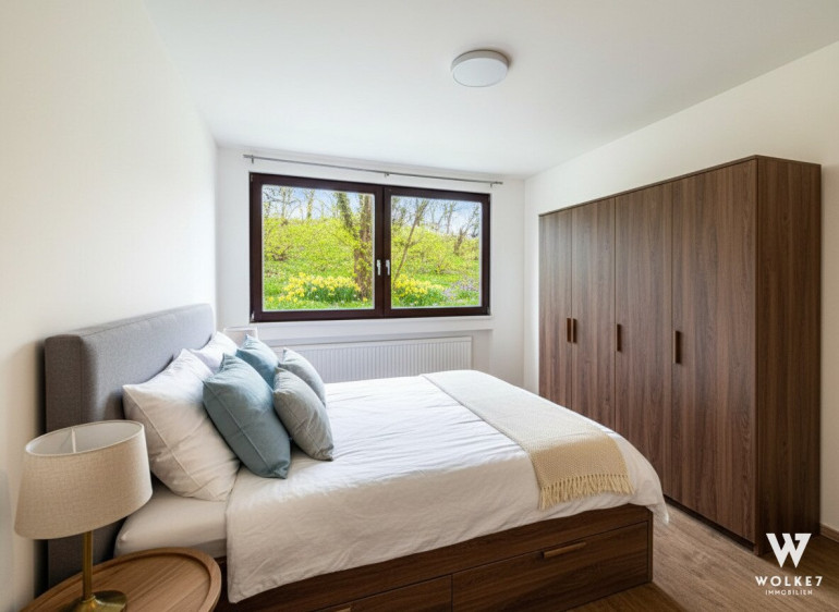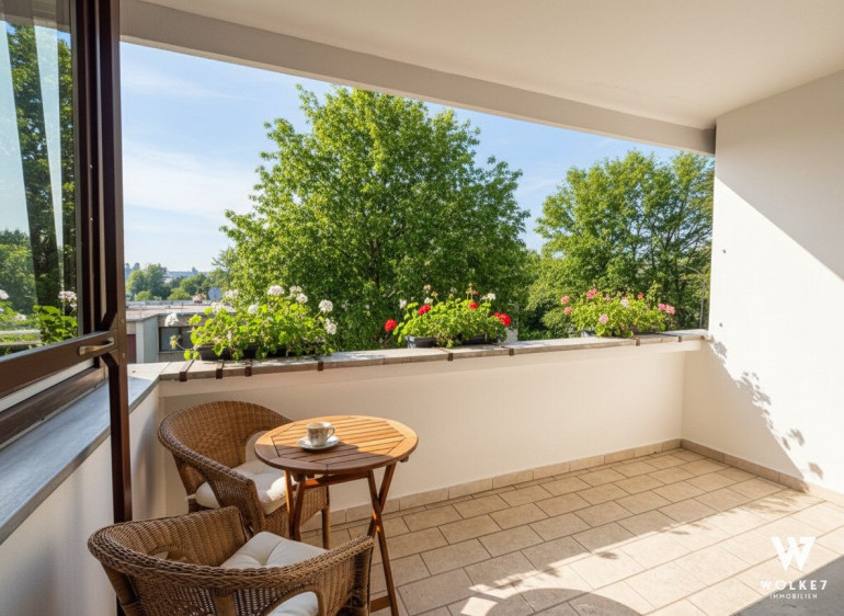 Ein besonderes Highlight ist die ca. 5,4 m² große Loggia mit schönem Blick ins Grüne, die zum Entspannen und Verweilen einlädt. Die ruhige, naturnahe Lage garantiert hohe Lebensqualität, während Infrastruktur und öffentliche Verkehrsanbindungen dennoch gut erreichbar sind.