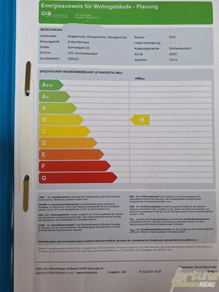 | Heizwärmebedarf: | B 33,60 kWh/m²a |