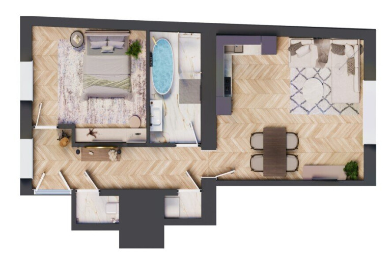 - hochwertiges Eichenparkett (gebürstet Chevron)
