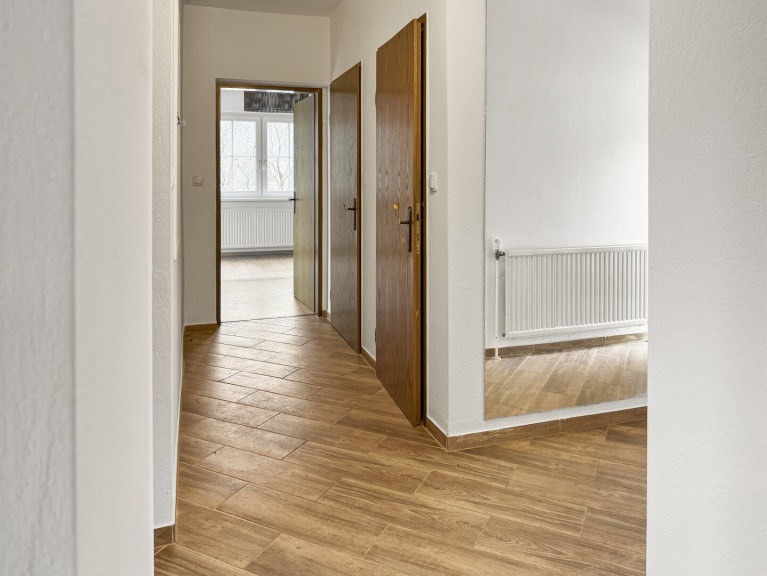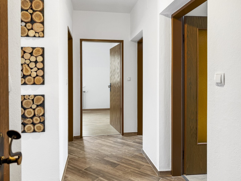 Schon beim Ankommen spürt man die angenehme Klarheit dieses Hauses. Nichts wirkt gedrängt, nichts überladen. Die Wohnfläche von rund 98 m² verteilt sich auf zwei Schlafzimmer, einen zentralen Wohnbereich und eine vorhandene Küche - übersichtlich, gut organisiert und gleichzeitig offen genug, um sich darin frei zu bewegen.
