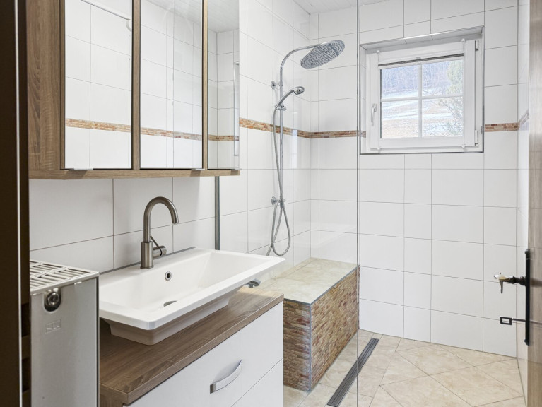 Die Schlafzimmer bieten Rückzug und Ruhe. Das Badezimmer mit stufenloser Dusche ist klar und angenehm gestaltet, das WC ist separat - eine Aufteilung, die sich im Alltag bewährt und dem Wohnen Struktur gibt.