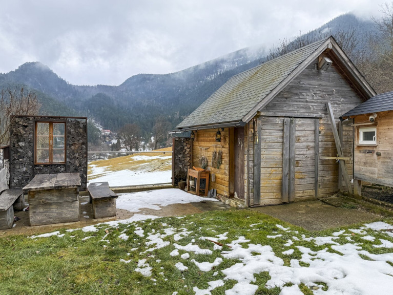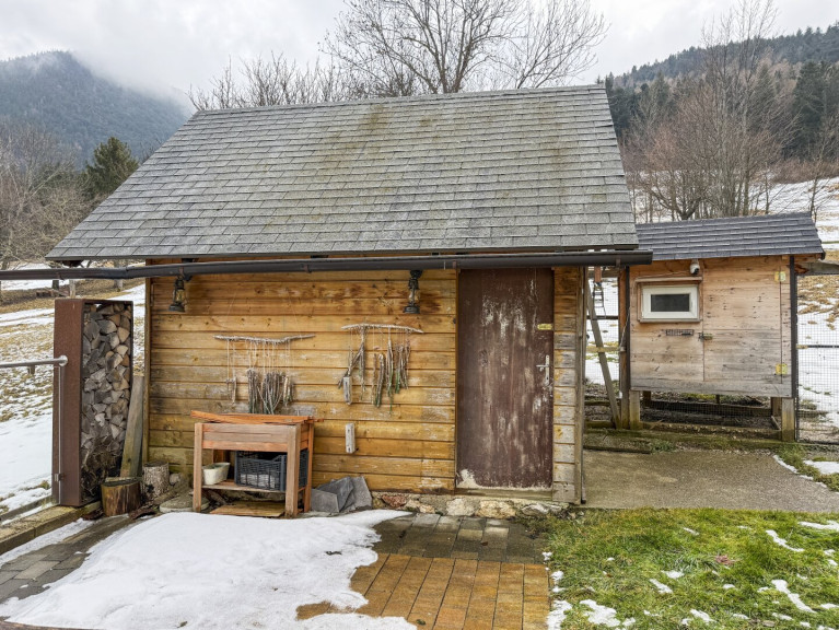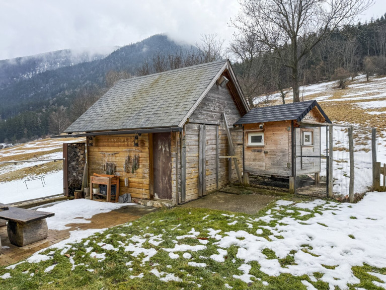 Ein Schuppen ergänzt den Außenbereich funktional. Der liebevoll gestaltete Hühnerstall fügt sich selbstverständlich ein und unterstreicht den ländlichen Charakter der Liegenschaft auf eine unaufgeregte, sympathische Weise.