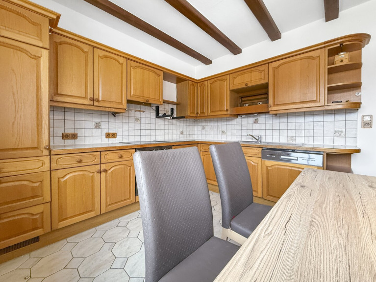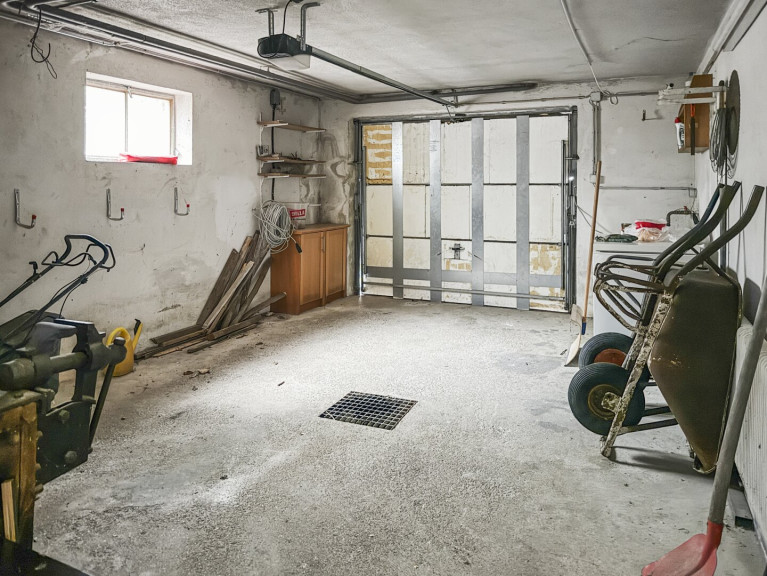 Laminatboden, Öl, Zentralheizung, Einbauküche, Bad mit Fenster, Dusche, Carport, Garage