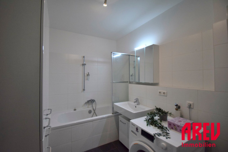 Das teilmöblierte Badezimmer mit Badewanne bietet die Möglichkeit, nach einem anstrengenden Tag zu entspannen. Die großzügige Loggia eignet sich hervorragend für Sitzmöbel und gemütliche Stunden an der frischen Luft.