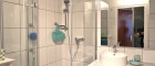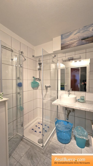 - verfliestes Badezimmer mit Dusche (80x80 cm), Nano-Verglasung, Waschschale, Waschmaschinen-