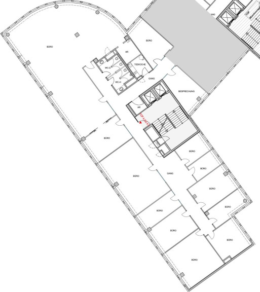 Zur Vermietung gelangt eine großzügige Bürofläche im 4. Obergeschoss eines modernen Bürogebäudes mit einer Gesamtfläche von 583 m².