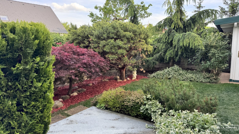 Der Außenbereich zählt zweifellos zu den größten Highlights dieser Immobilie. Der wunderschön gestaltete Gartenpräsentiert sich als grüne Ruheoase, die mit ihrer stimmigen Bepflanzung, gepflegten Flächen und liebevollen Details ein Gefühl der Entschleunigung vermittelt. Hier entsteht ein atmosphärischer Rückzugsort, der den Alltag angenehm ausblendet und Raum für Entspannung schafft.