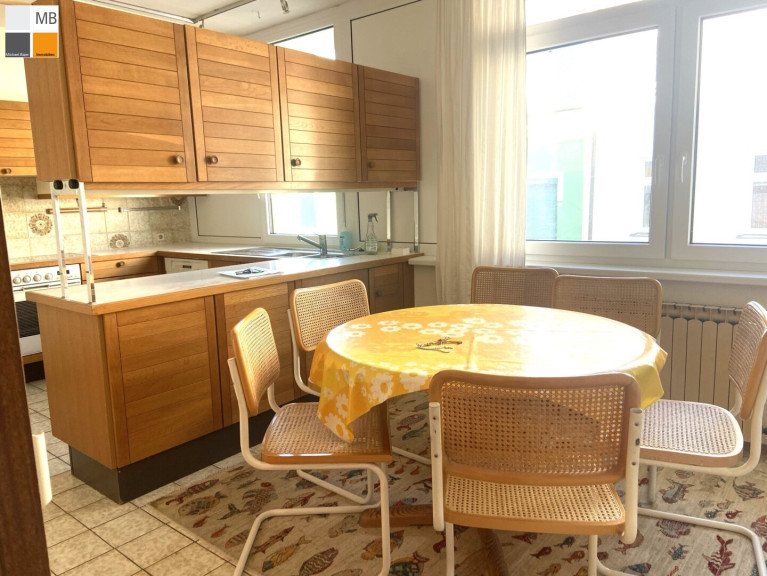 Die Wohnung ist soeben mit neuen Dielen ausgestattet worden, lediglich in einem Zimmer befindet sich noch ein Teppichboden. Die Küche, sowie Badezimmer und WC sind noch original und entsprechen nicht mehr ganz dem heutigen Zeitgeist.