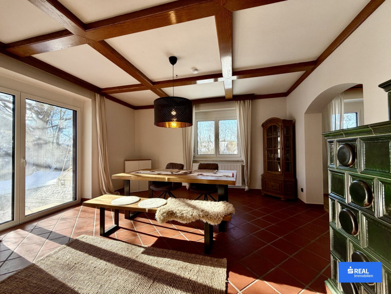 Das 1985 errichtete und 2023/2024 umfassend renovierte Haus überzeugt mit behaglicher Atmosphäre, durchdachtem Grundriss und einem zauberhaften Garten mit Biotop. Im Erdgeschoss bilden der großzügige Wohn- und Essbereich mit Kachelofen, die helle Küche mit Speis, zwei weitere Zimmer sowie ein Badezimmer das Herzstück des Hauses. Vom Esszimmer aus gelangen Sie direkt auf die Terrasse und in den märchenhaften Garten.