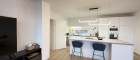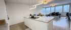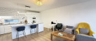 Das Wohnzimmer ist mit einer Küche und Essplatz integriert.