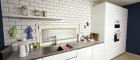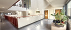Die Küche beinhaltet alle Geräte des täglichen Bedarfs und hat einen Kochpult in der Mitte.