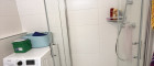 Das Bad ist mit einer Dusche und Waschmaschine ausgestattet. Die Toilette liegt separat nebenan.