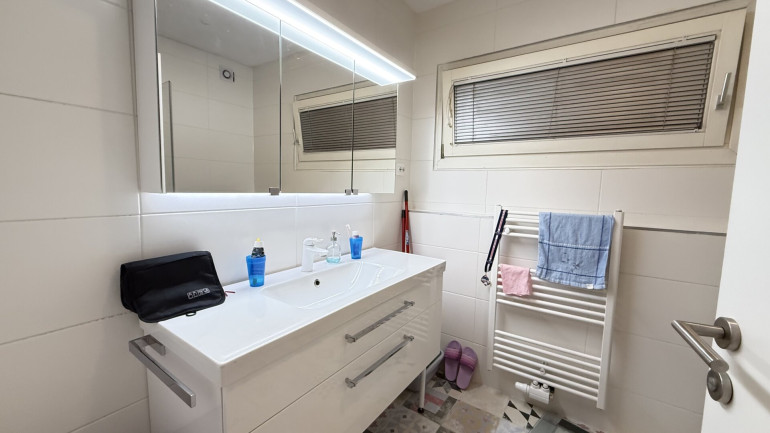 Vom rechten Schlafzimmer und vom Wohnzimmer aus haben Sie einen Zugang zur Loggia. Das mittlere Zimmer hat zwei Fenster zur Loggia.