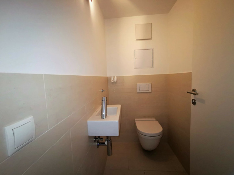 Das Bad ist mit einer Fußbodenheizung (elektrisch) ausgestattet. Mittels Raumthermostat können Sie die Heizung individuell steuern.