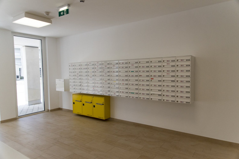 Gemeinschaftsräume der Anlage: Fahrradraum, Kinderwagenraum, Sauna und Fitnessbereich; Concierge; Besucherparkplätze;