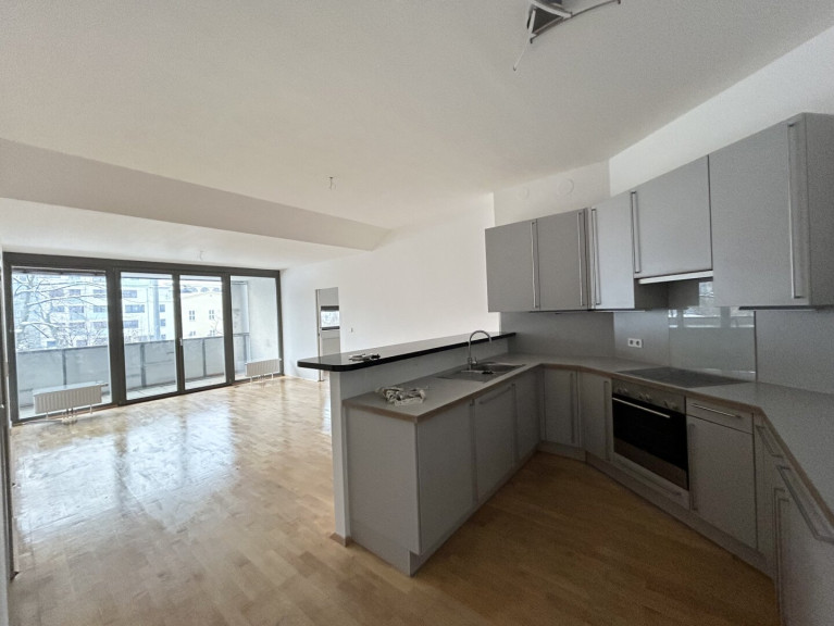 Hier wurde ein offenes Raumkonzept mit großzügigen Glasflächen in hochwertiger Ausführung umgesetzt. Die Wohnung wird auf 5 Jahre befristet vermietet.