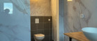 Die beiden Wohneinheiten in dem Gebäude sind so angeordnet, dass beide Wohneinheiten ein eigenes Bad mit Wanne und Fenster, ein eigenes WC und auch einen eigenen Küchenbereich haben. Aufgrund der Anordnung ist es aber auch möglich die beiden Wohneinheiten als eine einzige Wohneinheit mit zwei Bädern und zwei WCs zu nutzen.
