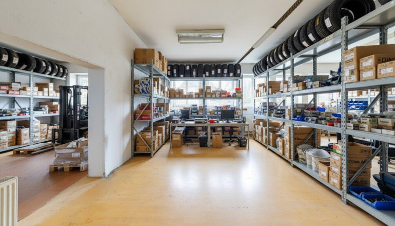 Logistik-Vorteil: Ein Hintereingang ermöglicht es, mit einem kleineren Transporter direkt in das Lager einzufahren. Be- und Entladevorgänge lassen sich so effizient und wettergeschützt abwickeln.