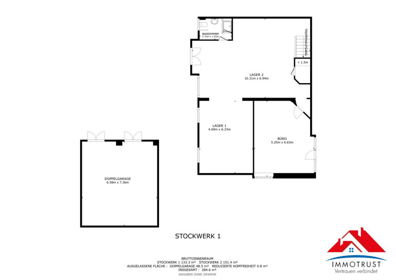 Flächen: EG 133,3 m² | OG 151,4 m² | Gesamt ca. 284,7 m²