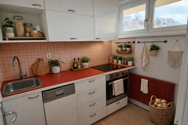 Die moderne Küche verfügt über zeitgemäße Geräte sowie ausreichend Stauraum.