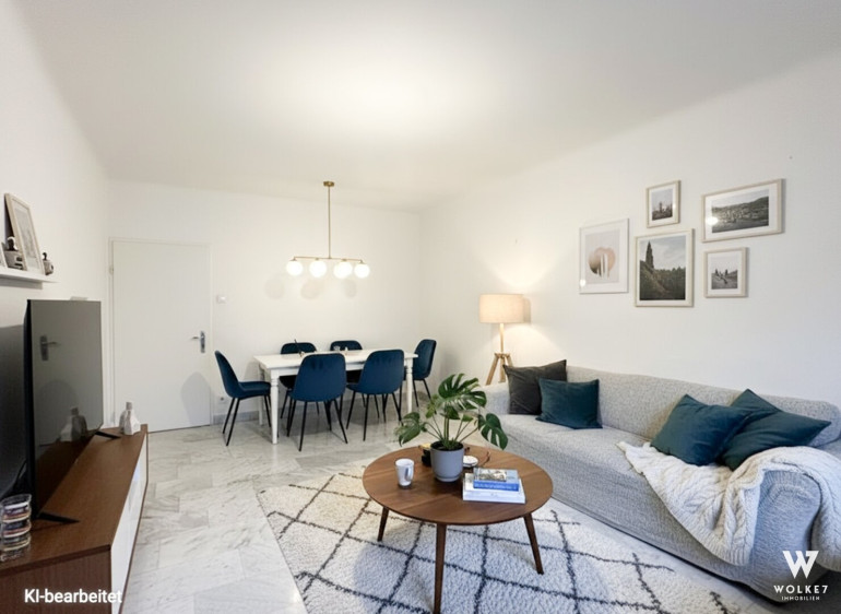 Die dargestellte Möblierung im Exposé wurde digital erstellt, um die Privatsphäre der Mieterin zu wahren, und dient ausschließlich der Visualisierung.