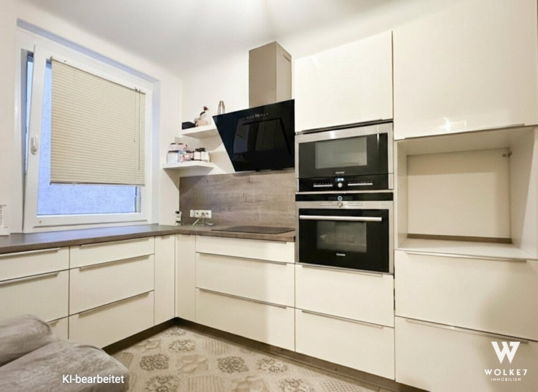 Die Küche ist aktuell durch eine Rigipswand abgetrennt – eine Umgestaltung zur offenen Wohnküche ist mit geringem Aufwand möglich.