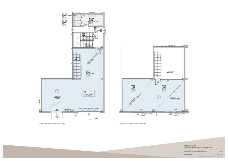 Das als Werkstatt/Lager/Büro nutzbare Objekt befindet sich im EG/OG und ist mit einer Tür und einer Garagentür versehen. Das Büro ist innen über Stufen erreichbar, WC ist im Stiegenhaus.