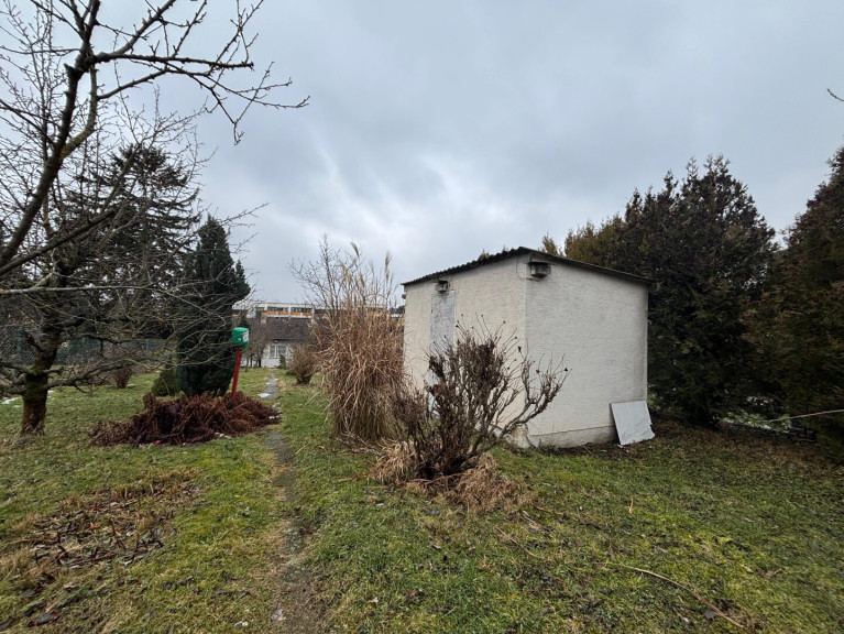 Auf dem Grundstück befindet sich ein Bestandsgebäude mit ca. 80 m² Wohnfläche, drei Zimmern, Terrasse, Keller sowie Garage. Das Haus ist stark sanierungsbedürftig und kann je nach Bedarf umfassend modernisiert oder als Abrissobjekt für einen Neubau genutzt werden. Ergänzend steht ein gemauertes Gartenhaus zur Verfügung.