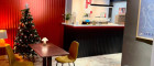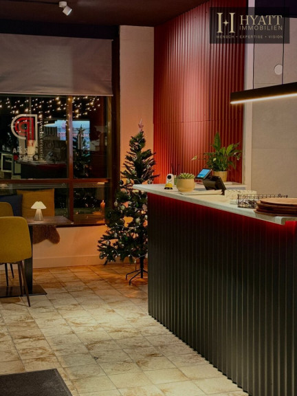 Der Gastraum ist offen, hell und einladend gestaltet und bietet flexible Möblierungsmöglichkeiten. Die großzügige Theke mit integrierter Beleuchtung bildet einen attraktiven Blickfang und eignet sich perfekt für den Servicebetrieb.