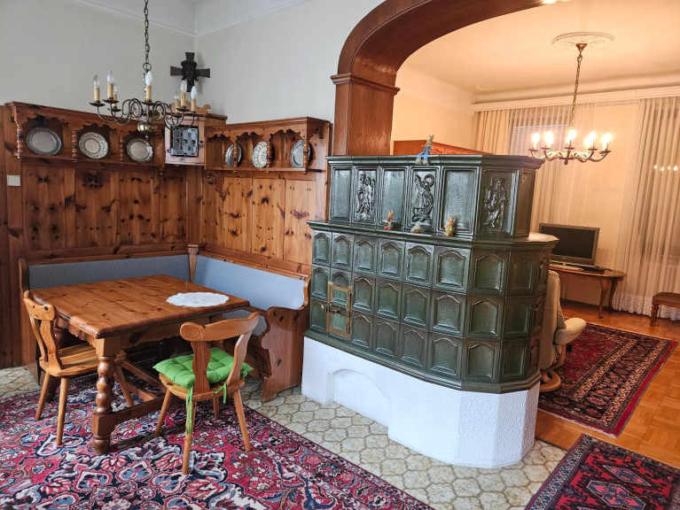- Esszimmer mit Kachelofen