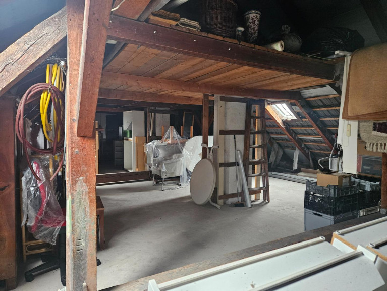 In den ausbaubaren Dachboden (Nettofläche ca. 115m²) führt bereits eine feste Betonstiege hinauf.