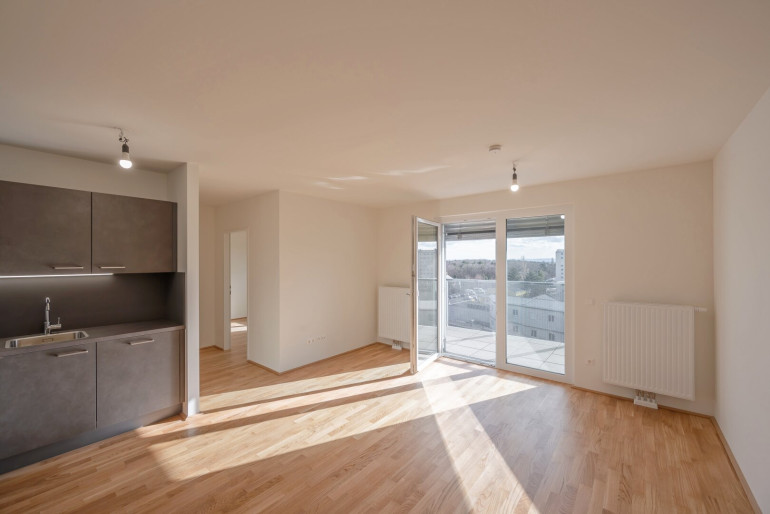 Zur befristeten Vermietung gelangt diese toll aufgeteilte und hochwertig ausgestattete ca. 50 m² große Neubauwohnung mit Balkon und Loggia in der sechsten Etage eines Neubaus in toller Lage des 10. Wiener Gemeindebezirk, Am Laaer Berg in unmittelbarer Umgebung zu Wald & Wiesen gelegen.