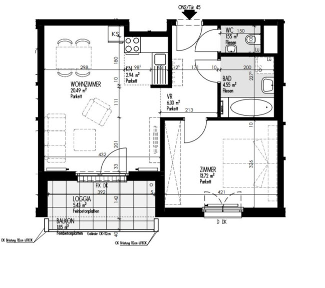 Raumaufteilung: STIEGE C TÜR 45