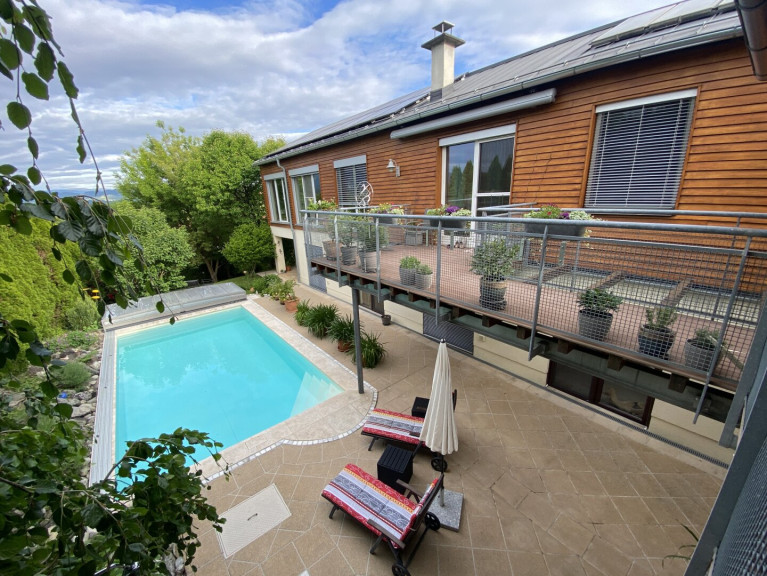 Dieses exklusive Einfamilienhaus mit ca. 260 m² Wohnfläche bietet großzügigen Raum für die ganze Familie und erfüllt höchste Ansprüche an Komfort, Design und Lebensqualität. Fünf lichtdurchflutete Zimmer überzeugen durch ihre durchdachte Raumaufteilung und verfügen allesamt über einen direkten Ausgang auf die großzügige Sonnenterrasse.