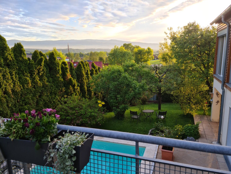 Ein besonderes Highlight dieser Immobilie ist der große, überdachte Swimmingpool, der mittels Wärmepumpe beheizt wird, sowie der liebevoll und hochwertig angelegte Garten. Der komplett uneinsichtige Außenbereich bietet absolute Privatsphäre und lädt dazu ein, laue Sommerabende auf einer der drei Terrassen zu genießen – begleitet von einem atemberaubenden Fernblick über die Weststeiermark.