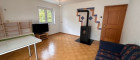 Das großzügige Wohnzimmer mit verglaster Veranda bildet das Herzstück der Wohnung – ein Ort zum Ankommen, Abschalten und Leben. Der moderne Pelletsofen sorgt an kühleren Tagen für wohlige Wärme und eine gemütliche, fast schon alpine Wohnatmosphäre.