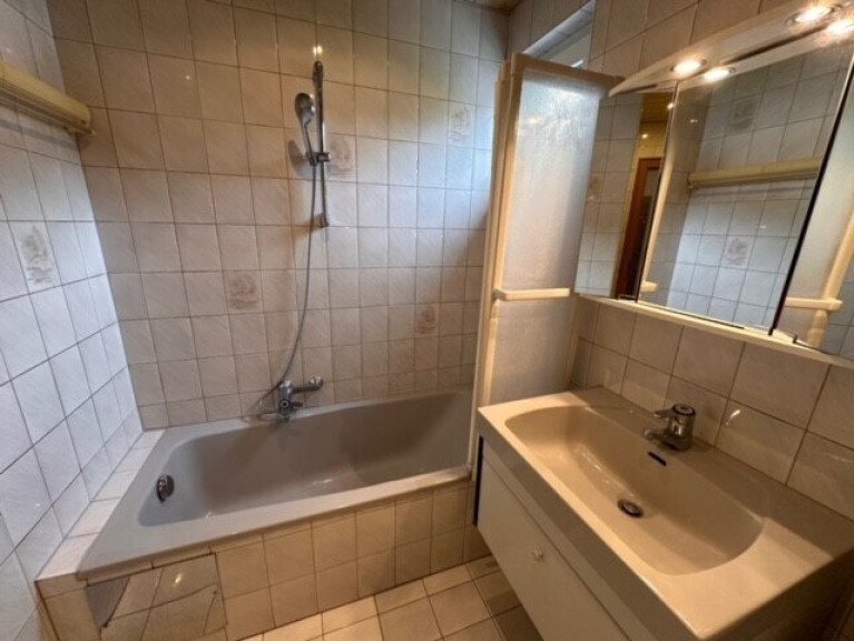 Das Badezimmer mit Fenster und Badewanne bietet Komfort und Tageslicht, während Abstellraum, Kellerabteil und Balkon den Wohnalltag angenehm abrunden.