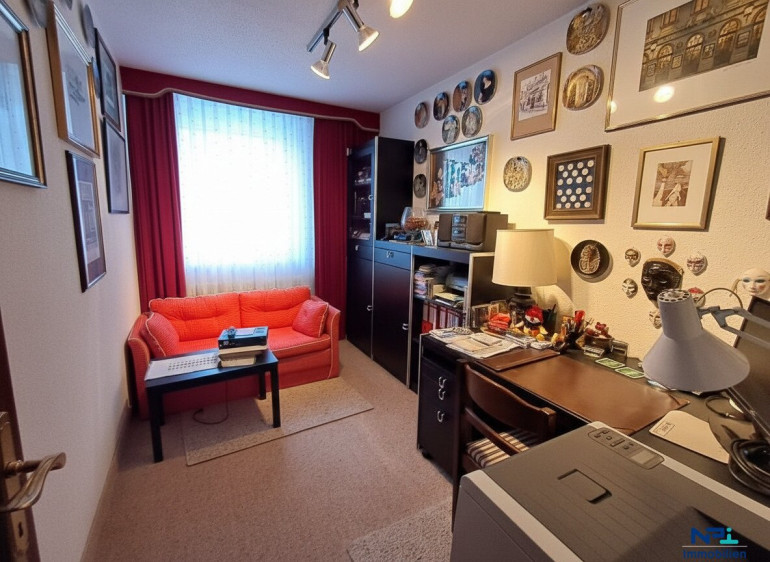 Im Obergeschoß befinden sich zwei Kabinette, ein großes Schlafzimmer mit Ausgang auf die ca. 7 m² große Loggia sowie ein Badezimmer mit Wanne und WC. Die Räume sind funktional geschnitten und bieten ausreichend Platz für Familie, Gäste oder Homeoffice.