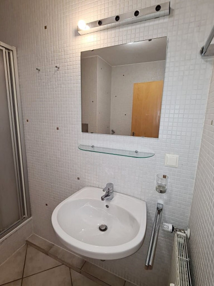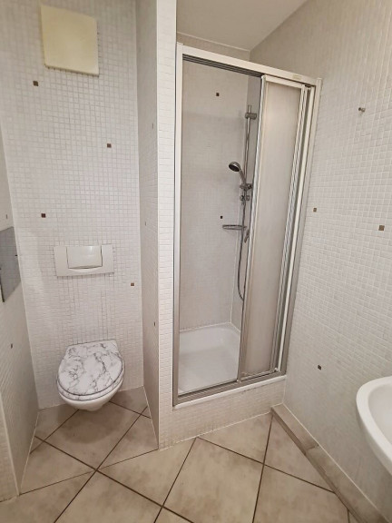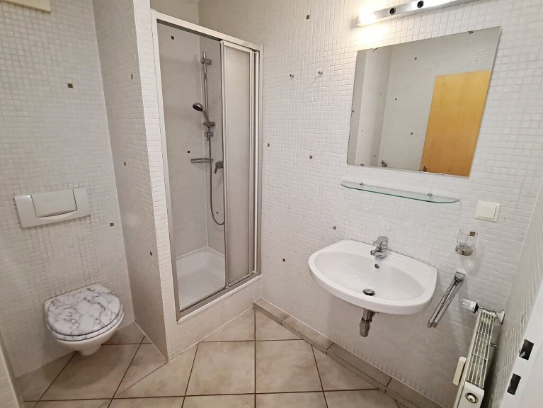 + Badezimmer mit Dusche, Waschtisch, WC und Waschmaschinenanschluss