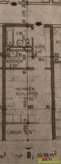 Die Wohnung verfügt über eine Wohnfläche von rund 36 m² und befindet sich im 3. Obergeschoss eines Wohnhauses mit Personenaufzug. Der Grundriss gliedert sich in einen Vorraum, ein Badezimmer mit WC, einen Kochbereich sowie einen kombinierten Wohn- und Schlafraum. Vom Wohnbereich aus ist der westseitig ausgerichtete Balkon erreichbar, der zusätzlichen Freiraum bietet. Die Räume sind funktional angeordnet und überwiegend zentral vom Vorraum erschlossen. Ergänzend steht ein Kellerabteil mit einer Fläche von etwa 3 m² zur Verfügung.