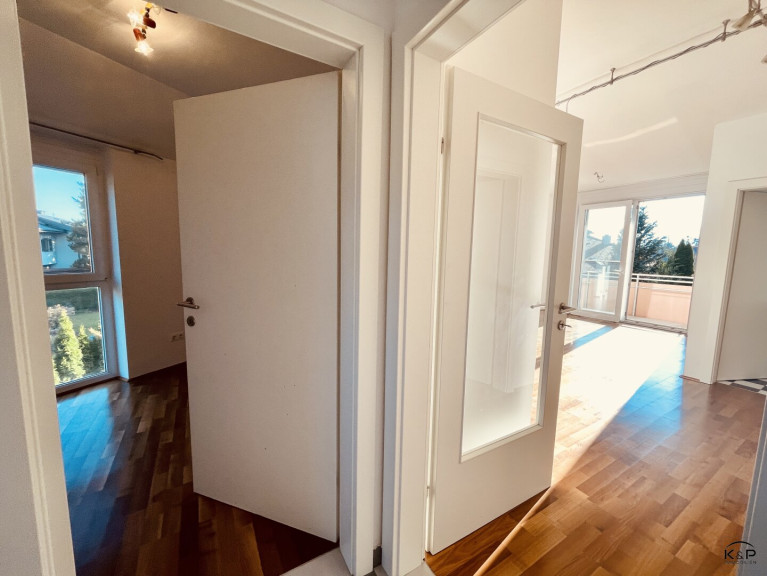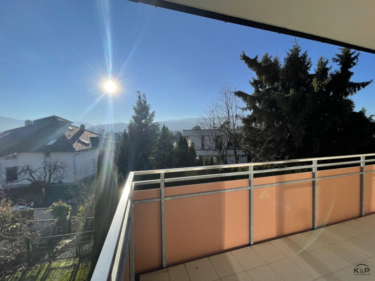 Vom Wohnzimmer und Schlafzimmer ist der große Balkon begehbar mit schönem Blick auf die Bergwelt und ins Grüne. Ein Kellerabteil und ein Tiefgaragenplatz gehört dazu!