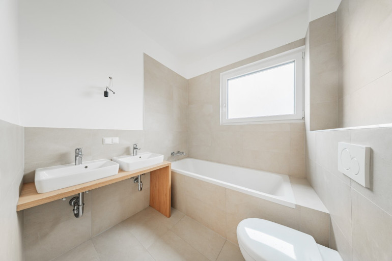 Die Wohnung verfügt über insgesamt vier Zimmer, ein Bad mit Dusche und WC sowie ein Bad mit Badewanne und WC. Sie eignet sich ideal für Paare oder kleine Familien, die modernes Wohnen mit Außenflächen in ruhiger Umgebung schätzen.