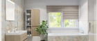 Fliesen, Parkett, Fußbodenheizung, Bad mit Fenster, Badewanne, Dusche, Parkplatz